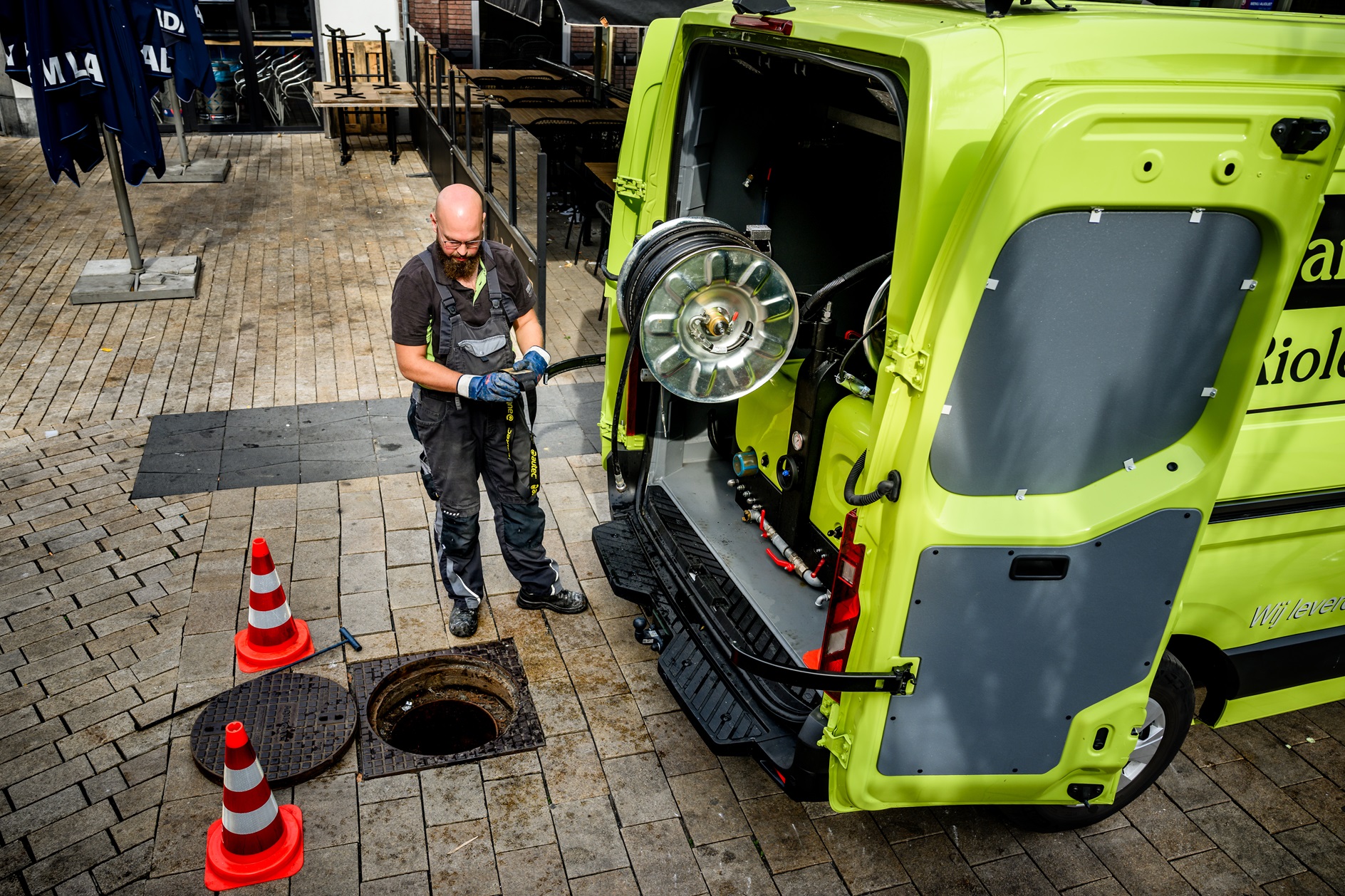 De nieuwe Master E-Tech is geen standaard bus. “Het is een vier tonner, L3H2, met achterin een volledig elektrische hogedrukinstallatie: de Rioned eCityJet,” legt Roel uit. “Deze installatie draait op 30kWh accucapaciteit en levert 60 liter per minuut bij 200 bar. Met twee types slangen en tal van spuitkoppen kunnen we hiermee elk riool weer als nieuw maken. Daarnaast zijn er diverse camerasystemen aan boord die leidingen van 20 tot 300 mm kunnen inspecteren. Kortom: een complete servicebus voor alle voorkomende ontstoppings- en reinigingswerkzaamheden.”